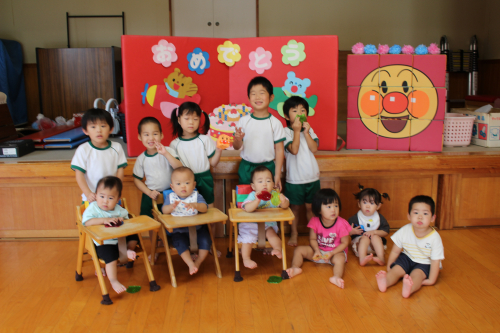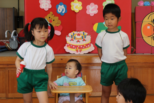 今日は、9月生まれのKちゃんの誕生日会をホールでやりました