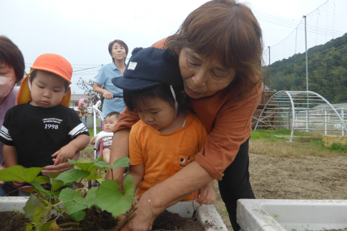 梅・藤・桜組は、畑で育てたさつま芋の収穫を一緒にしました。
