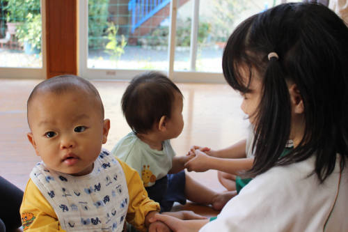 お兄ちゃん・お姉ちゃんと手をつないで楽しそうにしていました。