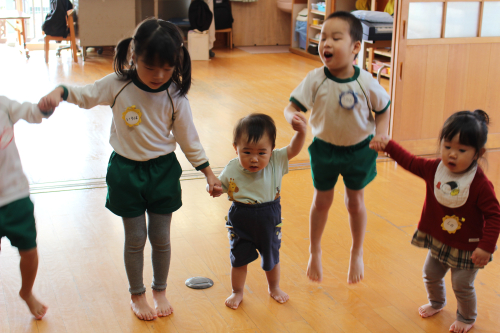 今日も、ピアノに合わせてたくさん体を動かして遊びました