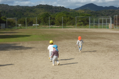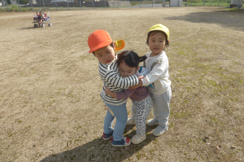 横中広場でかけっこをして、「みんなよくがんばったね」とギューとしました。