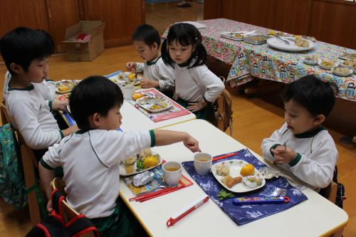 今日まで実習に来てくれていたお姉ちゃんと一緒にバイキング給食を楽しみました