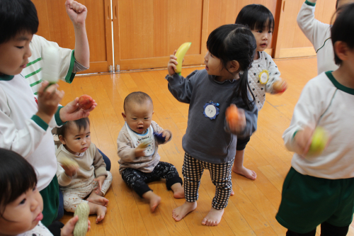 先週から入所のTちゃんは、初めてのリトミックでしたが音楽が大好きでフルーツのマラカスを楽しそうに鳴らしていましたよ🍌