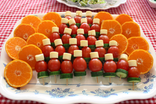 ・えびピラフ ・鶏肉のソフト揚げ ・ミモザサラダ ・ほうれん草のソテー ・サラダピンチョス(きゅうり・チーズ・トマト)・かぼちゃスープ・くだもの(みかん🍊)