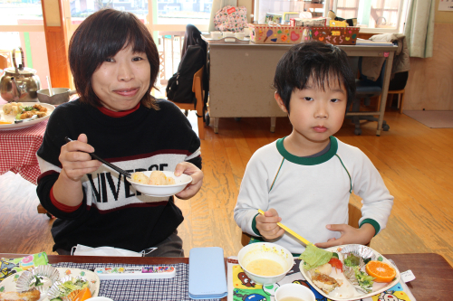 今日は、桜組のKくん・桃組のYくんのお母さんが1日保育士に遊びに来てくれました