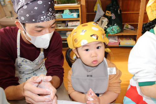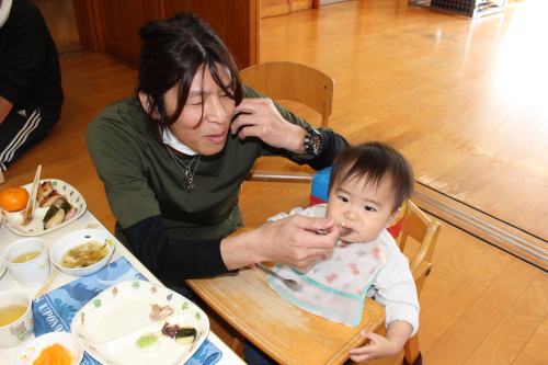 桜組もお母さんと一緒に子ども用の杵でやってみました。