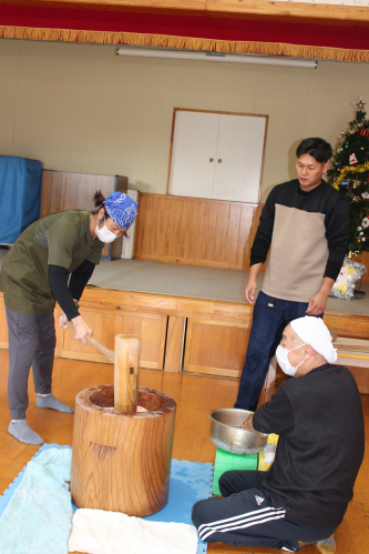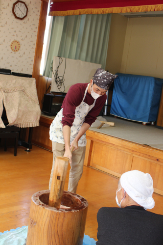 お家の方のお陰で、お餅つきをすることができました