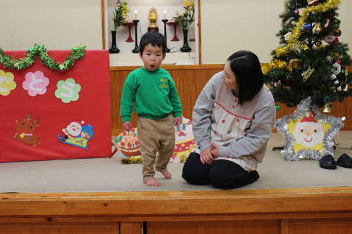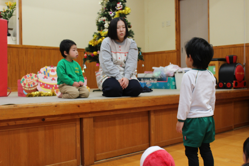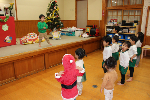 今日は、12月生まれの誕生会でSくんがステージに上がりました
