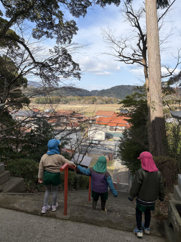 長い階段を登って神社に到着しました