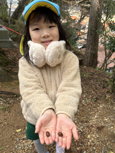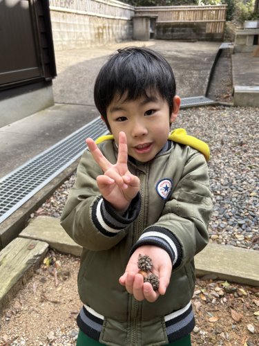 小さいどんぐりがたくさん落ちていたので拾って帰りましたよ。