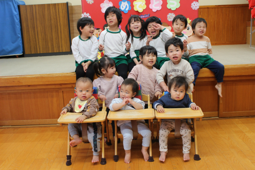 みんなからの質問コーナー「大きくなったら何になりたいですか?」Iちゃん「保育園の先生になりたい。」と答えていました。