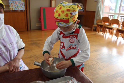 出来た物をカップに1つずつ入れていきます スプーンで上手に入れていましたよ