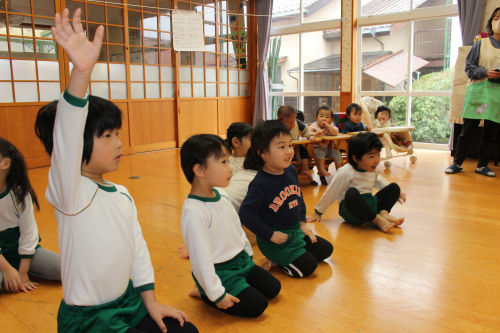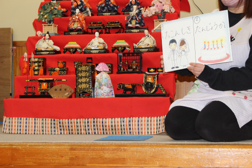「ひな祭りクイズ」をしてみんな積極的に答えていましたよ。