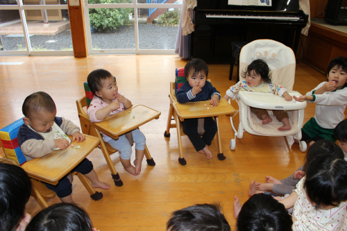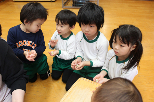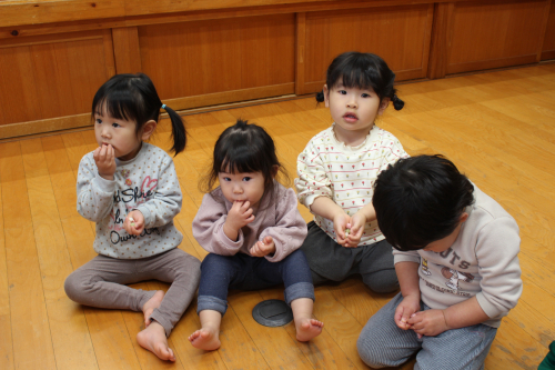 みんなで🎵うれしいひなまつり🎵の歌を歌って、ひなあられを食べましたよ