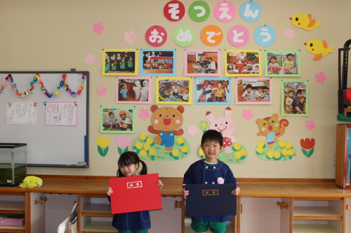 天気にも恵まれて、在園児や保護者の方に見守られながら立派に卒園式を行うことができましたよ