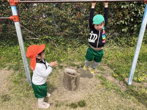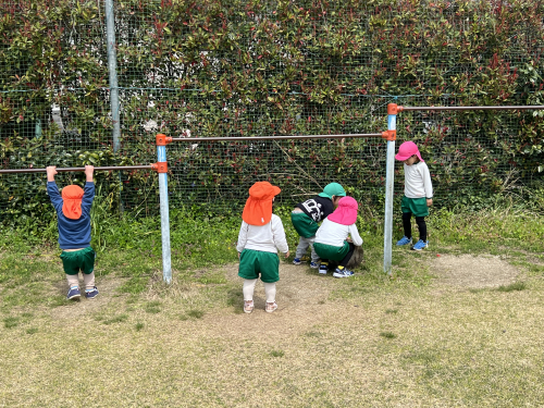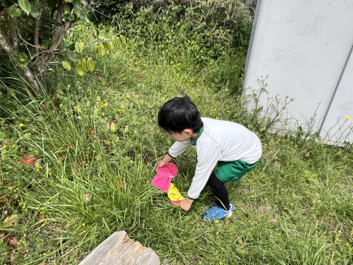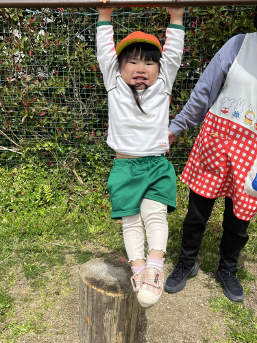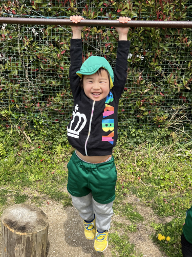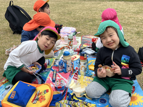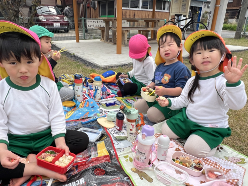 園外でのお弁当を予定していましたが、朝は小雨☔が降っていてみんなでテラスに出て「雨止んでくださ~い👋」とお願いをしました。