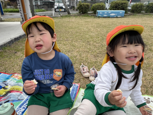 梅組に進級したSくんとTちゃん🎵 大きいクラスになって初めてのお弁当で笑顔😊