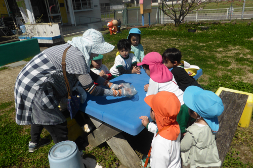 「わ~にげる、にげる」 「飛ぶけぇ~つかまえて」子ども達は大騒ぎ
