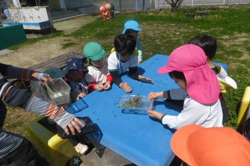 虫かごに移して、みんなでじっくりと観察しましたよ