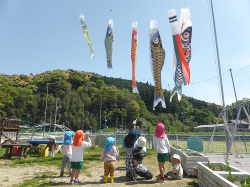 青い空を泳ぐ鯉のぼりを見て大興奮の子ども達でした